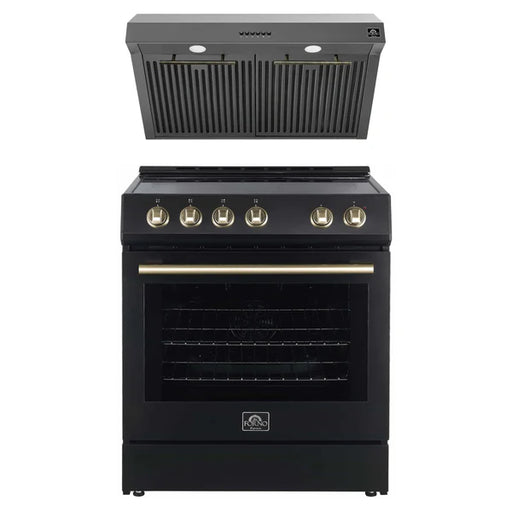 FORNO 2-Piece Appliance Package – 30" Electric Range & 36" French Door Refrigerator (Black with Antique Brass Handle) Luxury Design Meets Moder...