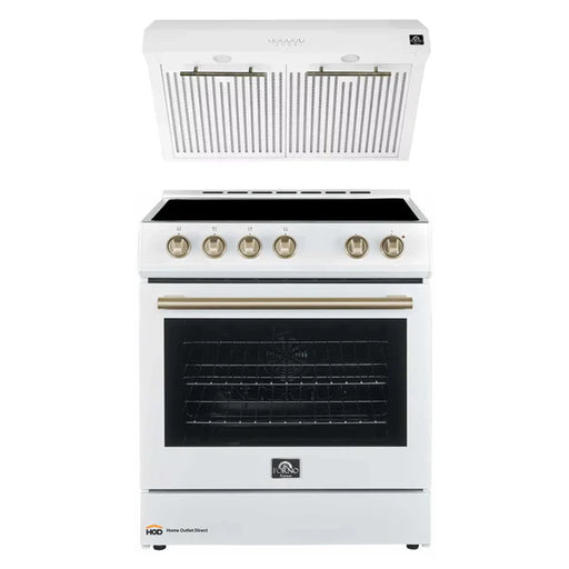 FORNO 2-Piece Appliance Package – 30" Electric Range & 30" Refrigerator (White with Stainless Steel Handle) Modern Performance Meets Timeless D...