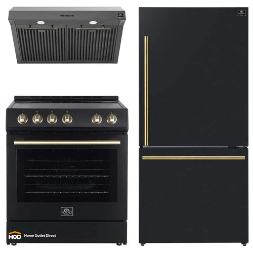 FORNO Espresso 3-Piece Appliance Package – 30-Inch Electric Range, 31-Inch Bottom Freezer Refrigerator & 30-Inch Under Cabinet Range Hood Trans...