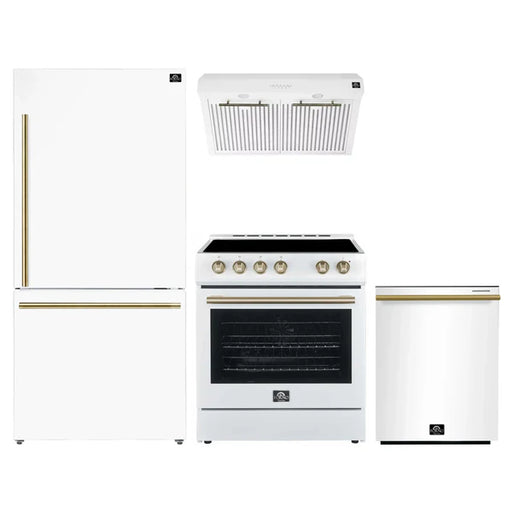 FORNO 4-Piece Appliance Package – 30-Inch Electric Range, Under Cabinet Range Hood, 31-Inch Refrigerator, and Built-In Dishwasher in White with Ant...