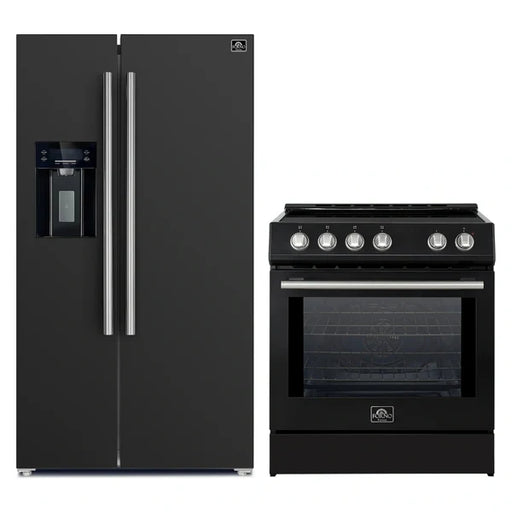 FornoForno 2-Piece Appliance Package – 30-Inch Slide-In Induction Range & 36-Inch Side-by-Side Refrigerator with Water Dispenser in Black with Stain...