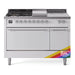 ILVE Nostalgie II 48" Dual Fuel Range with 5 Sealed Burners + Griddle + French Top Solid Door
