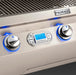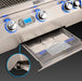 Blue LED lighting switches to red when burners are on, with interior halogen lights for nighttime grilling.