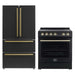 FORNO 2-Piece Appliance Package – 30" Electric Range & 36" French Door Refrigerator (Black with Antique Brass Handle)