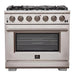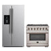 FORNO 2-Piece Appliance Package – 36-Inch Gas Range + 36-Inch Refrigerator with Water Dispenser in Stainless Steel