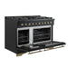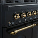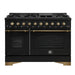 Elevate your culinary experience with the Forno Antico 48-Inch Dual Fuel Range, where professional-grade performance meets timeless Italian-inspired design. Crafted with a sleek black finish and antique brass accents, the Antico blends modern sophistication with vintage charm—making it a stunning centerpiece for any luxury kitchen.