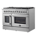 FORNO Galiano 48-Inch French Door Dual Fuel Range All Stainless Steel, 8 Sealed Burners, 107,000 BTU, Griddle, 6.58 cu.ft. Double Ovens