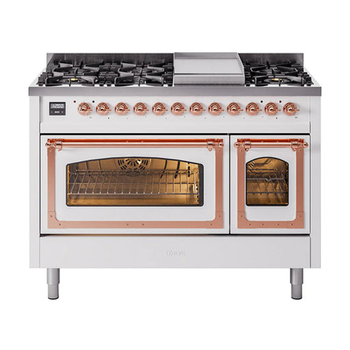 View full detailsILVE Nostalgie II 48" Dual Fuel Range with 5 Sealed Burners + Griddle + French Top Solid Door - UP48FSQNMP