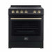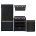 FORNO 4-Piece Appliance Package – 30-Inch Electric Range, Under Cabinet Range Hood, 31-Inch Refrigerator, and Built-In Dishwasher in Black with Antique Brass Trim