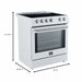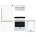 FORNO 4-Piece Appliance Package – 30-Inch Electric Range, Under Cabinet Range Hood, 31-Inch Refrigerator, and Built-In Dishwasher in White with Antique Brass Trim
