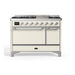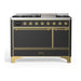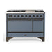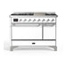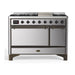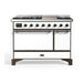 ILVE 48 Inch Majestic II Series Freestanding Dual Fuel Liquid Propane Range with 8 Sealed Brass Non Stick Coated Burners and Griddle (UM12FDQNS3)