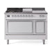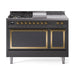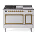 Elevate your kitchen with the ILVE Nostalgie II Noblesse 48" Dual Fuel Freestanding Range. Combining 5 sealed burners, a griddle, French top, dual ovens with 5.02 cu. ft. total capacity, and soft-closing doors, this range delivers precision, versatility, and timeless Italian style.
